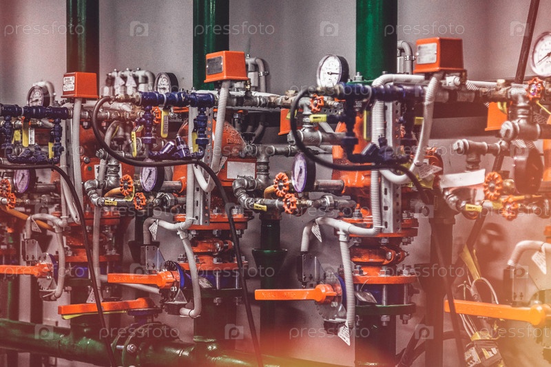 Водяная насосная станция и трубопровод с баками в промышленном помещении