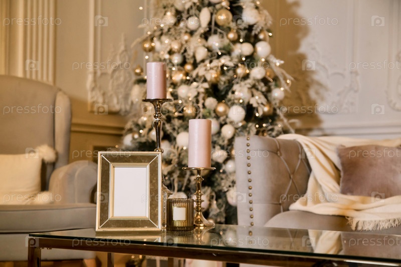 Домашний уютный рождественский и новогодний интерьер в гостиной
