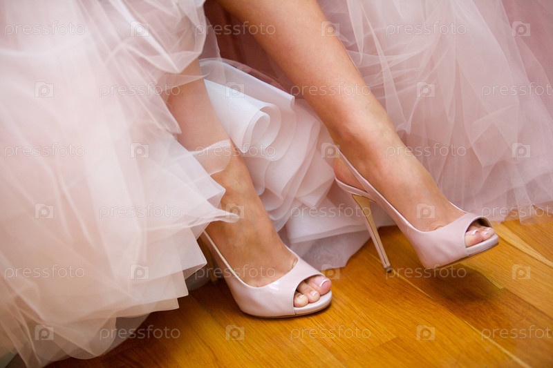 Обувь белая клиндата на ногах молодая девушка девушка невеста в белом платье