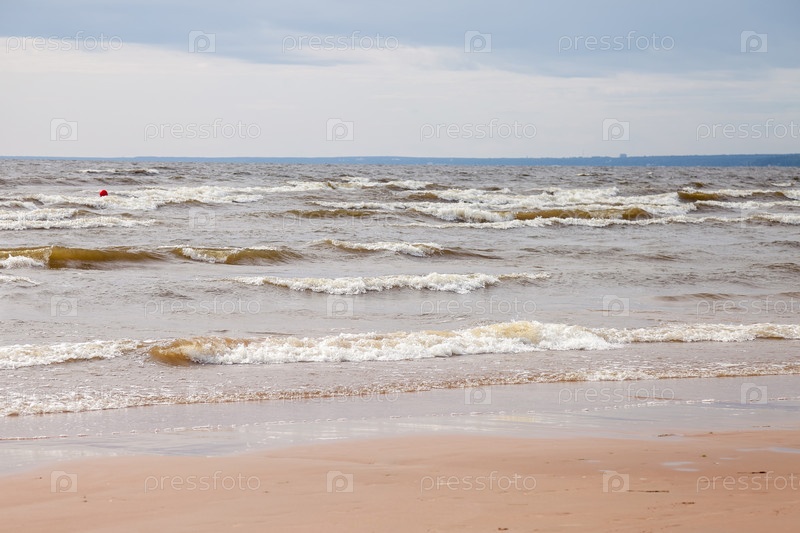 Атмосферный пейзаж Драматическое Балтийское море, волны и брызги воды на волнорезах
