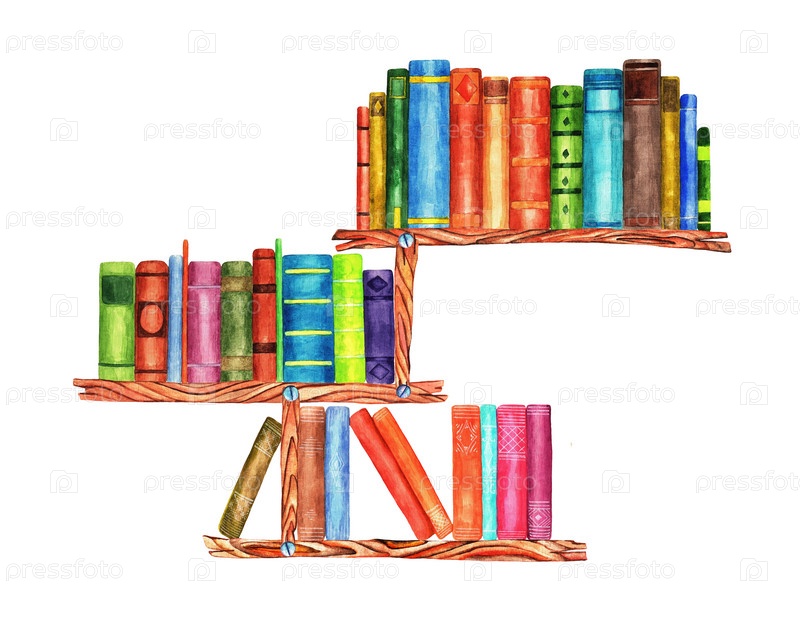 Полки с книгами. Акварель