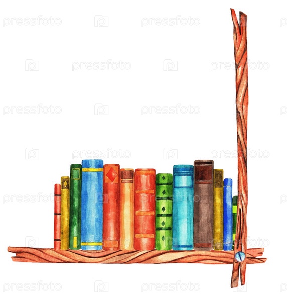 Книги на полке. Акварель