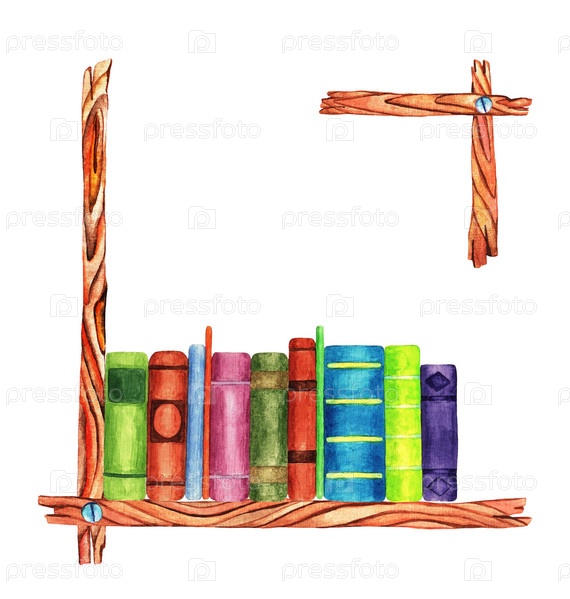 Книги на полке. Акварель