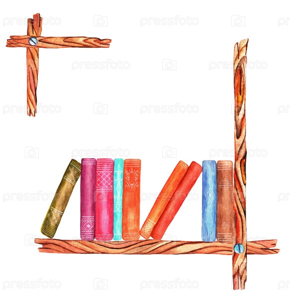 Книги на полке. Акварель
