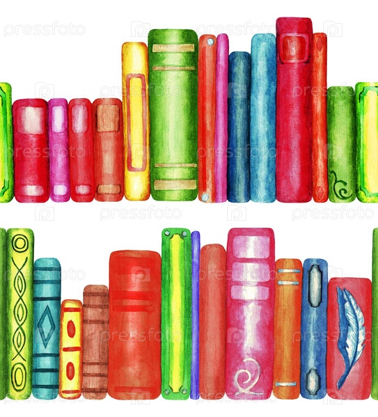 Книги, бесшовный узор, акварель