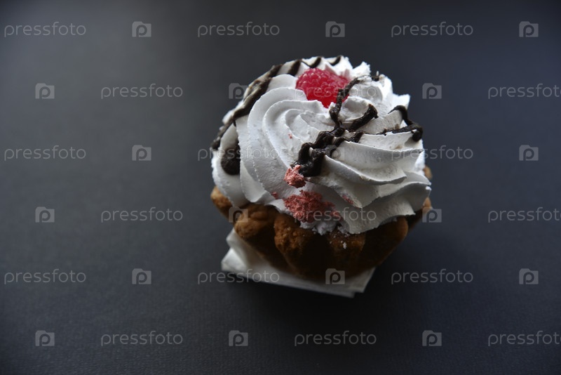 Сладкие пирожные со сливками на черном фоне. Вкусные пироги на завтрак на черном фоне
