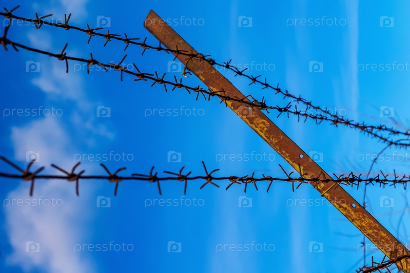 Колючая проволока на краю ясного голубого неба