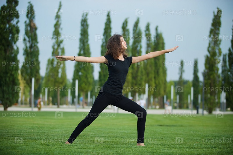 Девочка школьного возраста занимается йогой в спортивной форме, показывает элементы спорта и асан