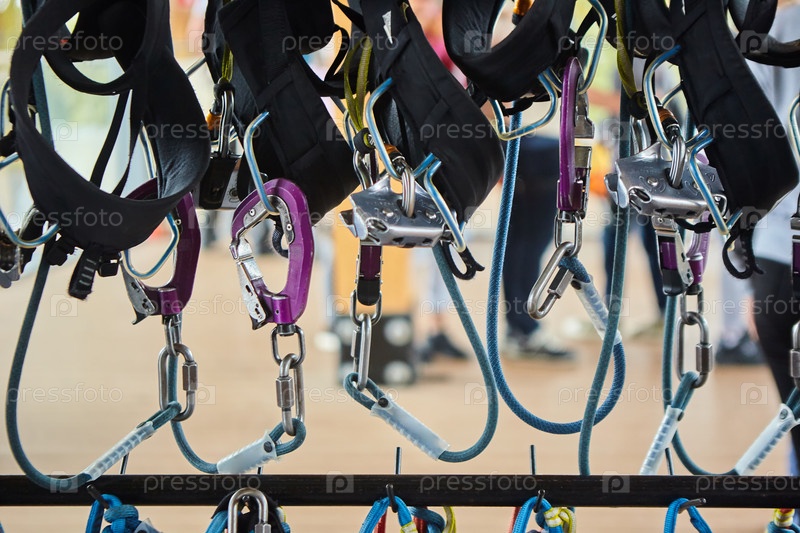 Веревки и карабины для альпинизма или лазания по веревкам. Снаряжение и защита для активных видов спорта