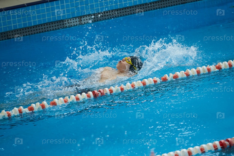 Мальчик занимается спортивным плаванием, занятиями или соревнованиями в бассейне