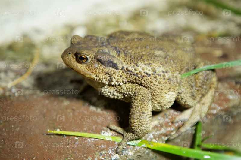 Жаба сидит на поверхности. Изучение земноводных животных. Фауна и зоология
