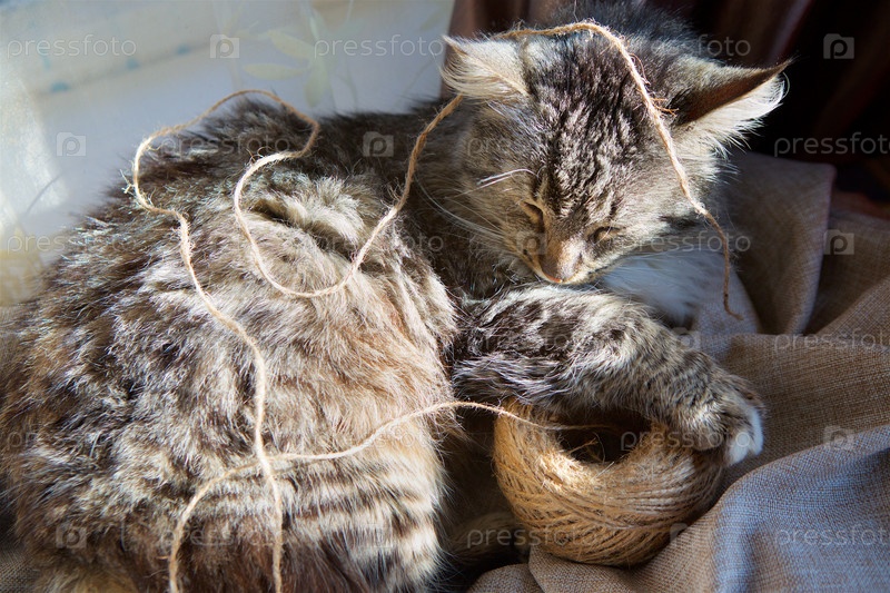 Домашний пушистый полосатый кот