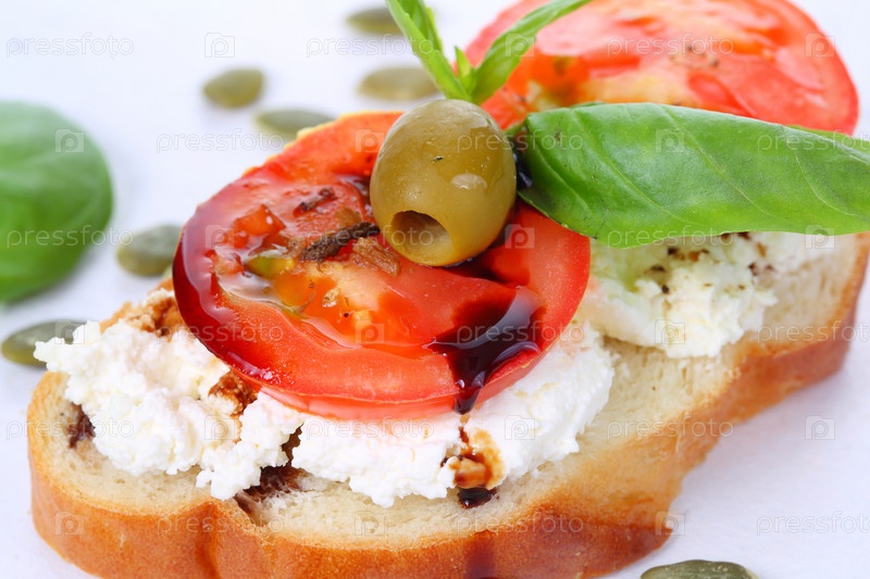 Брускетта с сыром,ветчиной и оливками