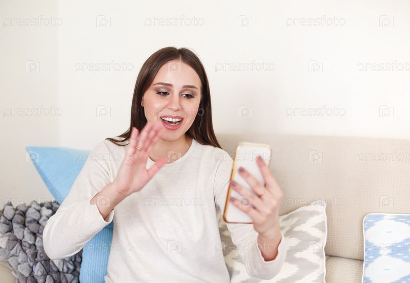 Женщина разговаривает по видео на смартфоне