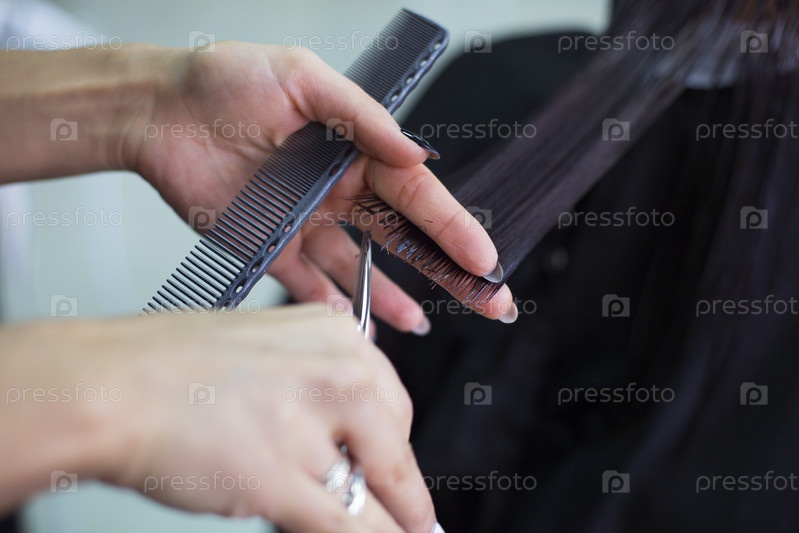 Парикмахер стрижет волосы клиента в салоне красоты. Концепция красоты