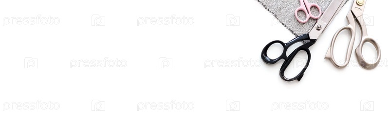 Портновские ножницы разложенные на столе на белом фоне