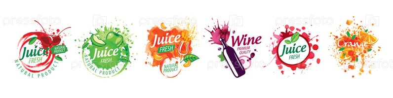 Набор логотипов с нарисованными брызгами сока