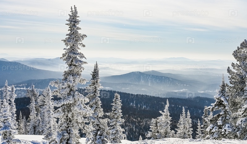 Заснеженные деревья в зимнем пейзаже