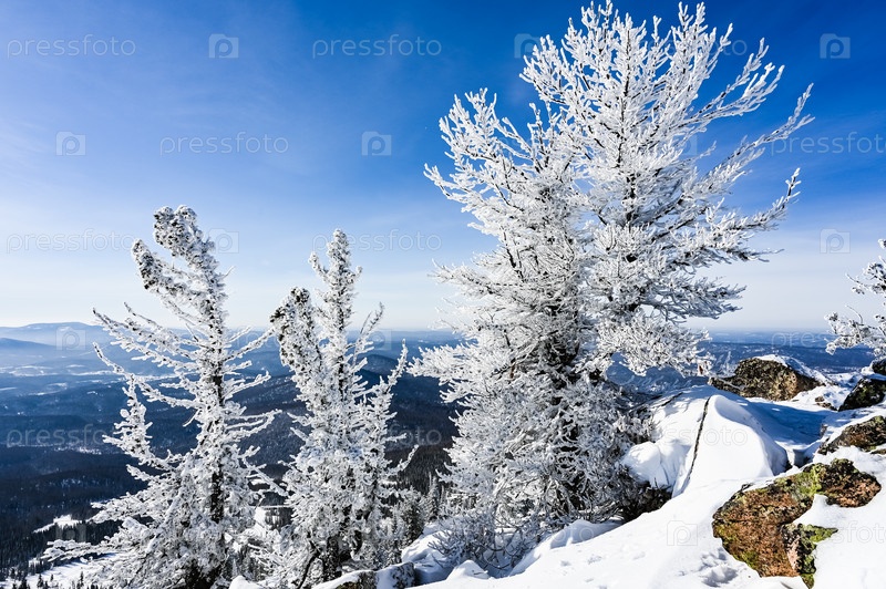 Скала зимой покрыта снегом