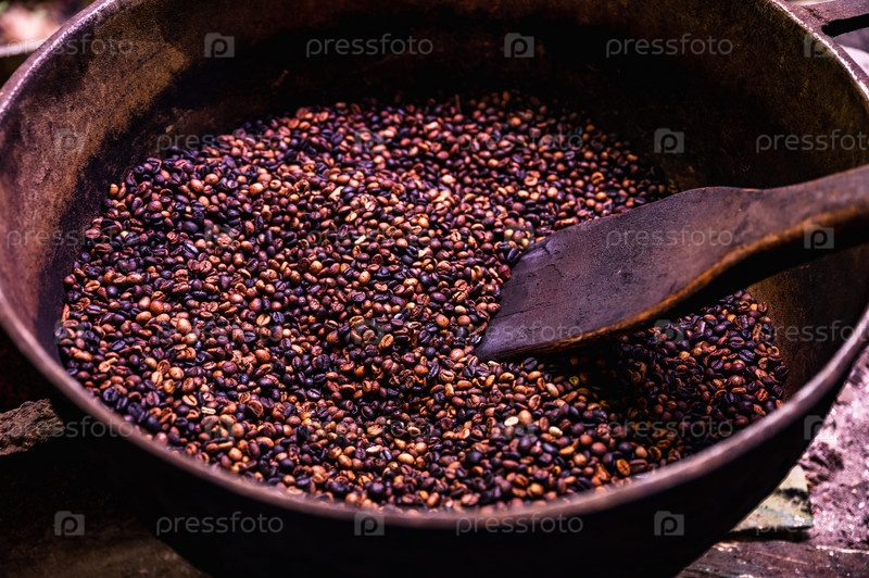 Приготовление обжаривания кофейных зерен на костре