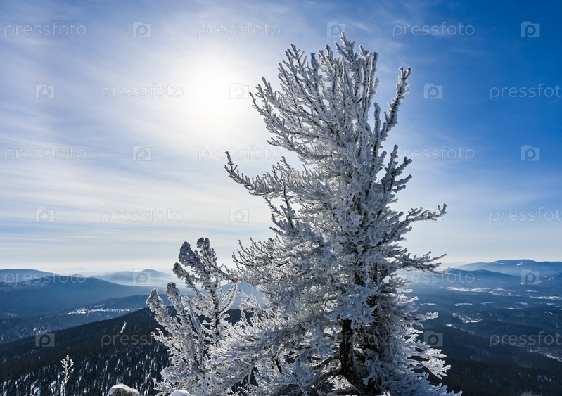Дерево в снегу на солнце
