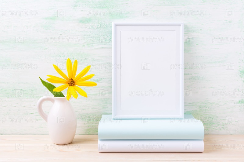 Модель-макет белой рамки с ярко-желтыми цветами и книгами