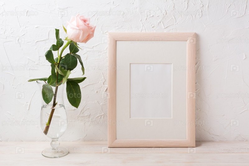 Макет деревянной рамы с розой в изысканной стеклянной вазе