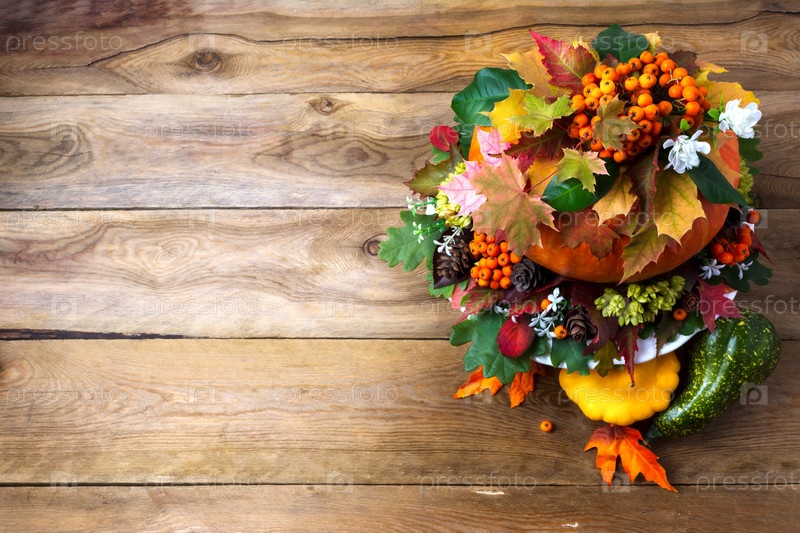 Центральная часть для стола дня благодарения с осенними листьями на деревенском деревянном столе