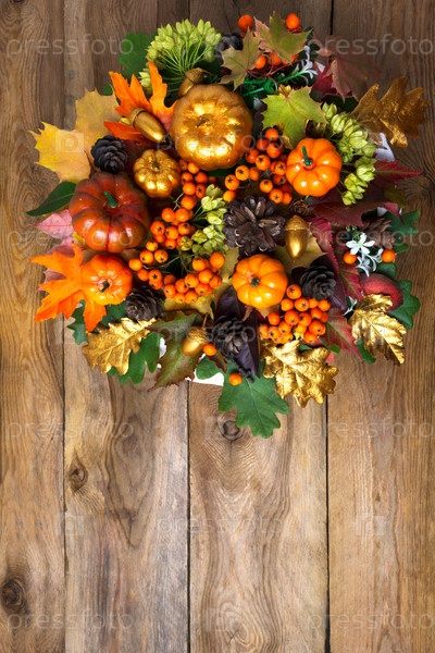 Венок дня благодарения на старом деревянном столе