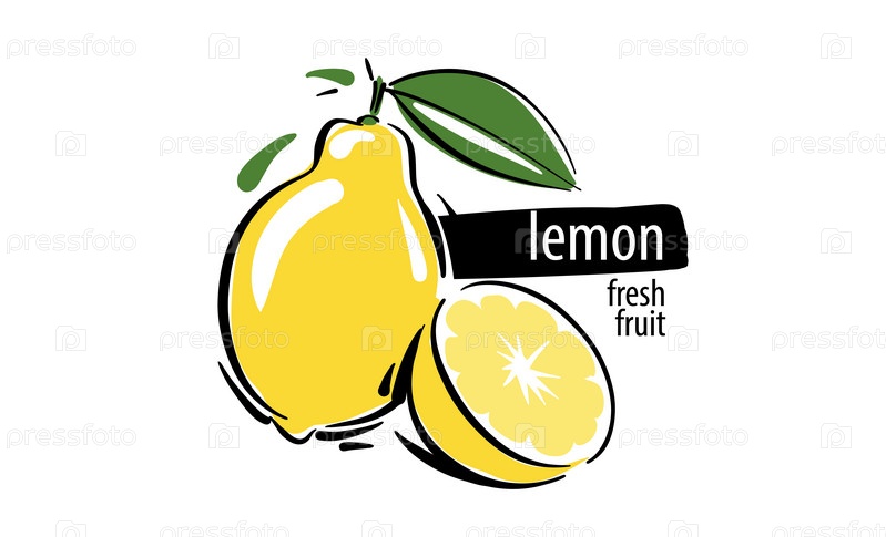 Нарисованный лимон на белом фоне