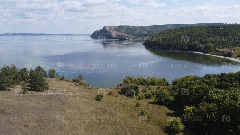 Молодецкий курган и Жигулевское море в Самарской области России. Ясный солнечный день 28 июля 2021 года