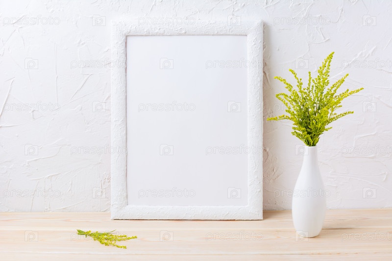 Макет белой рамки с декоративной травой в изысканной вазе