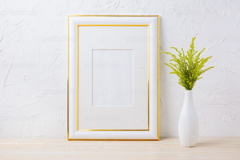Украшенный золотом макет рамки с декоративной травой в изысканной вазе