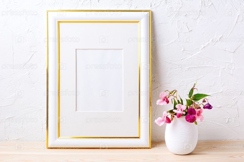 Украшенный золотом макет рамки с букетом цветов в цветочном горшке