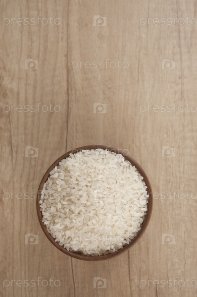 Чаша белого риса на деревянном столе
