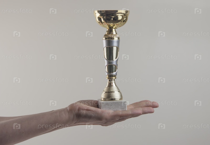 Кубок трофея в руке на белом фоне
