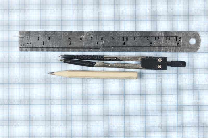 Инструменты для рисования, лежащие на миллиметровой бумаге
