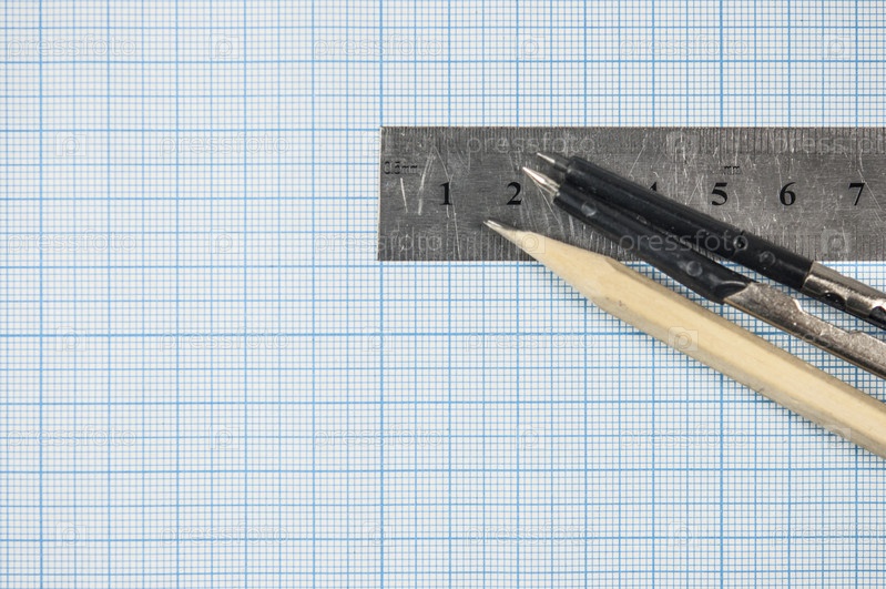 Инструменты для рисования, лежащие на миллиметровой бумаге