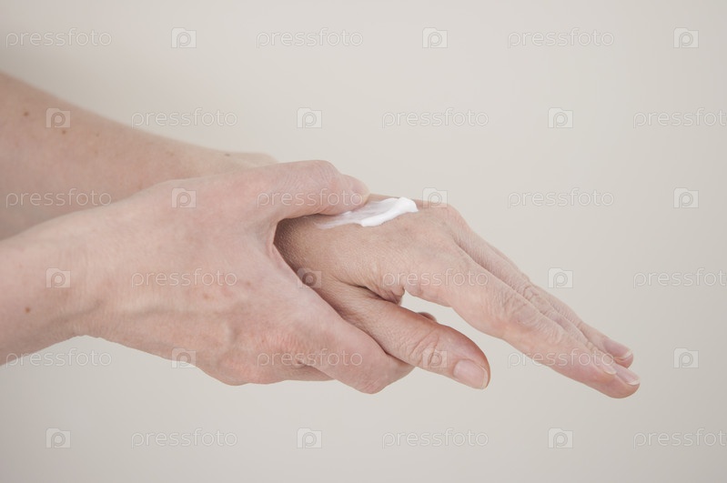 Крупный план руки молодой женщины, наносящей крем на руку