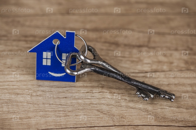 Символ дома с серебряными ключами на дереве. Концепция недвижимости