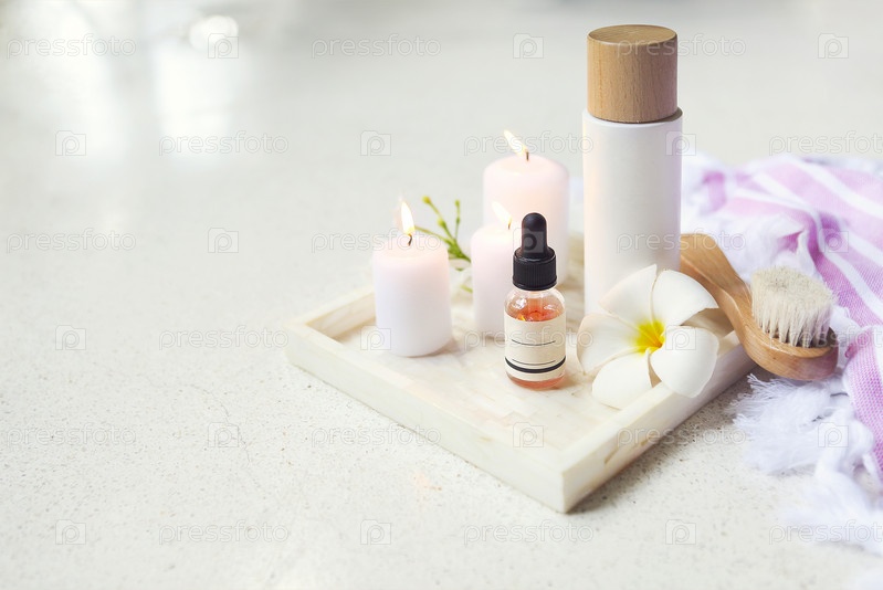 Крем для лица, сыворотка, лосьон, увлажняющий крем и масло для лица среди белых франжипани
