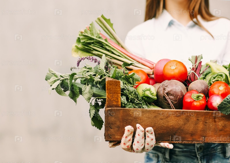 Урожай женщина-садовник с овощами