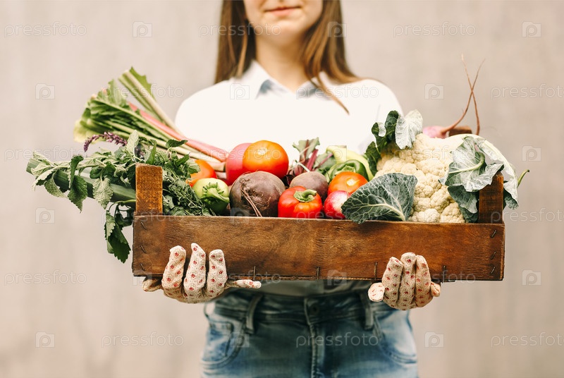 Урожай женщина-садовник с овощами
