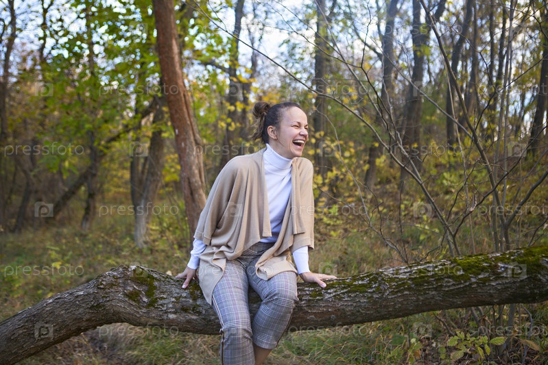 Молодая улыбающаяся женщина в осеннем парке
