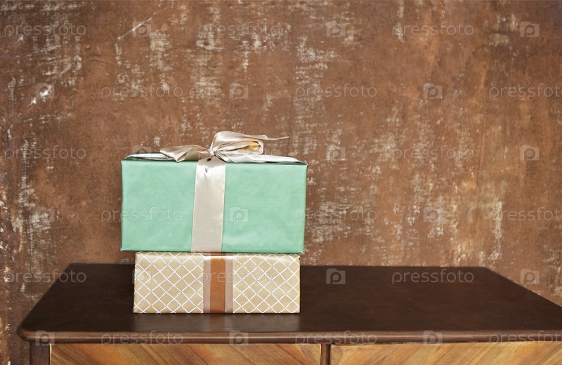 Стопка подарочных коробок ручной работы на деревянной доске с натуральным текстурированным фоном