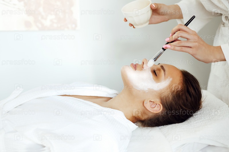Косметолог наносит маску на клиента