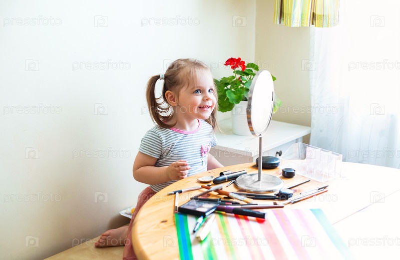 Милая девушка наносит макияж дома