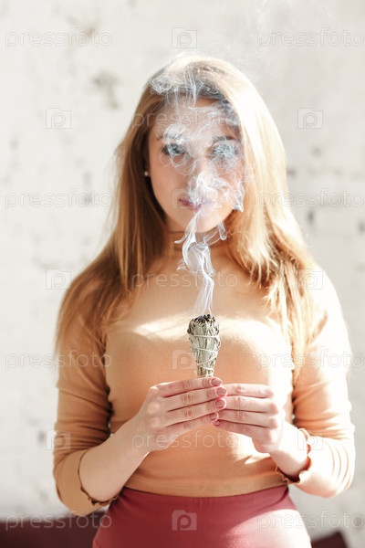 Девушка сжигает ароматные благовония