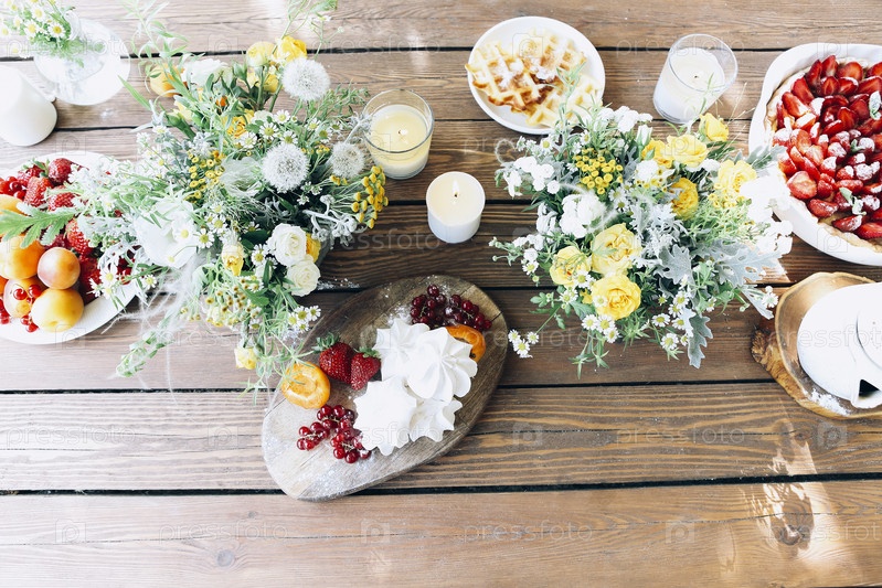 Аппетитный завтрак на столе на террасе