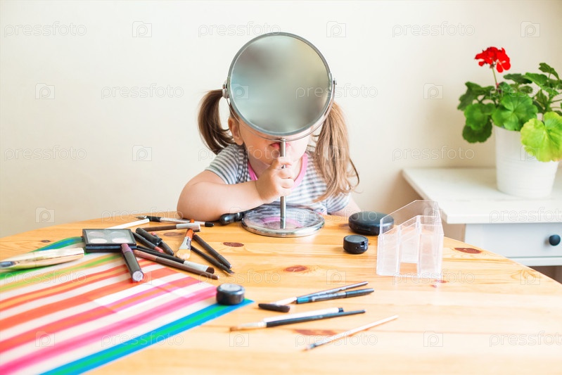 Милая девушка наносит макияж дома